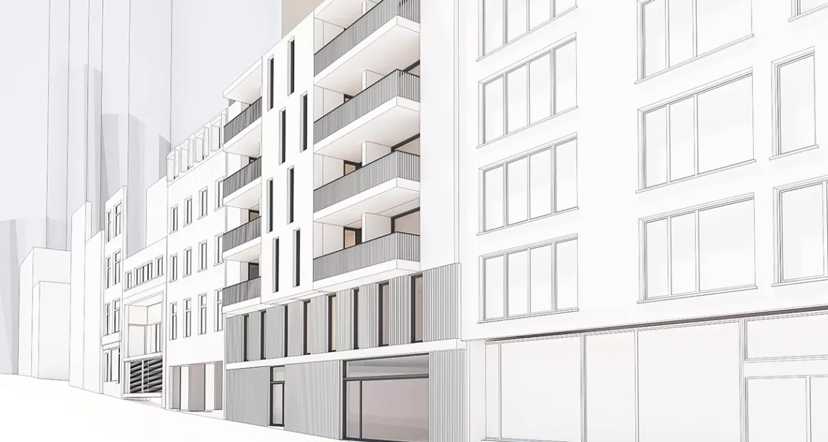 New construction of mixed housing: 38 units over 7 floors and 2 levels of underground parking.